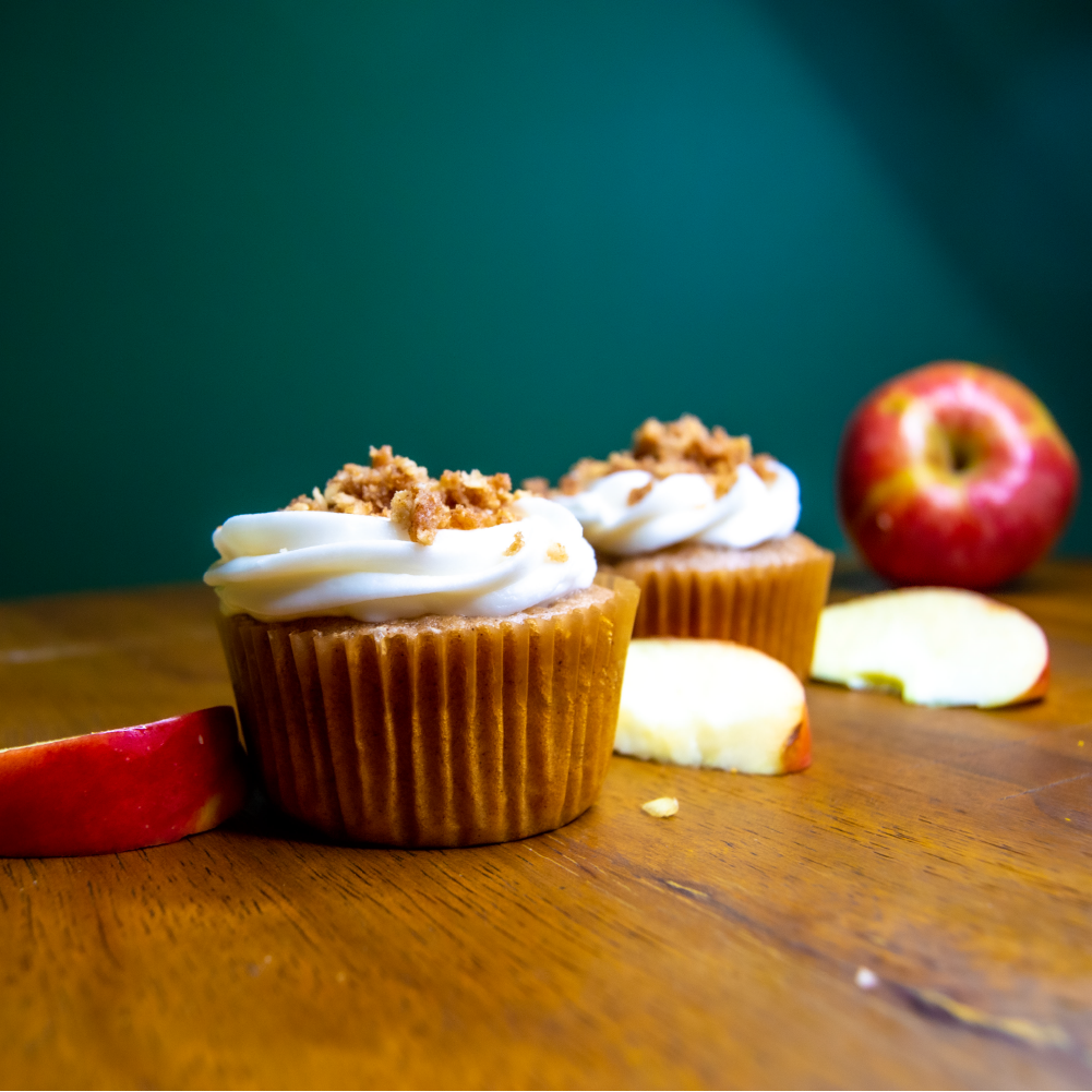 Our apple crumble cupcake with vanilla buttercream and cinnamon oat crumble